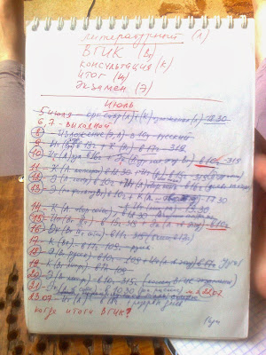 23 июля мне сказали, что я получила 90 баллов за собеседование. Что говорить - я была довольная! А 24-го июля я заболела, да на целую неделю. Позвонила в Литературный, спросила, до какого числа успеваю принести документы. Голос моей знакомой "приемной матери" Оксаны Павловны Лисковой сказал мне, что до 9 августа я спокойно могу продолжать болеть.