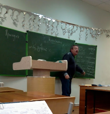 Педагог по теории стихосложения, Сергей Михайлович Казначеев, как раз рассказывает о размерах стиха. Фото автора. |